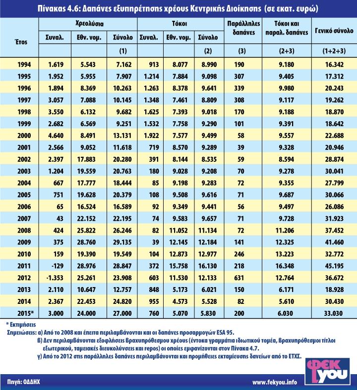 Δαπάνες Εξυπηρέτησης Χρέους Κεντρικής Διοίκησης 1994 – 2015