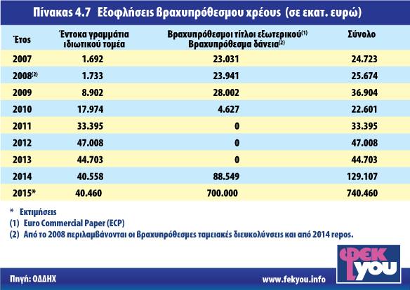Εξοφλήσεις Βραχυπρόθεσμου Χρέους 2007 – 2015