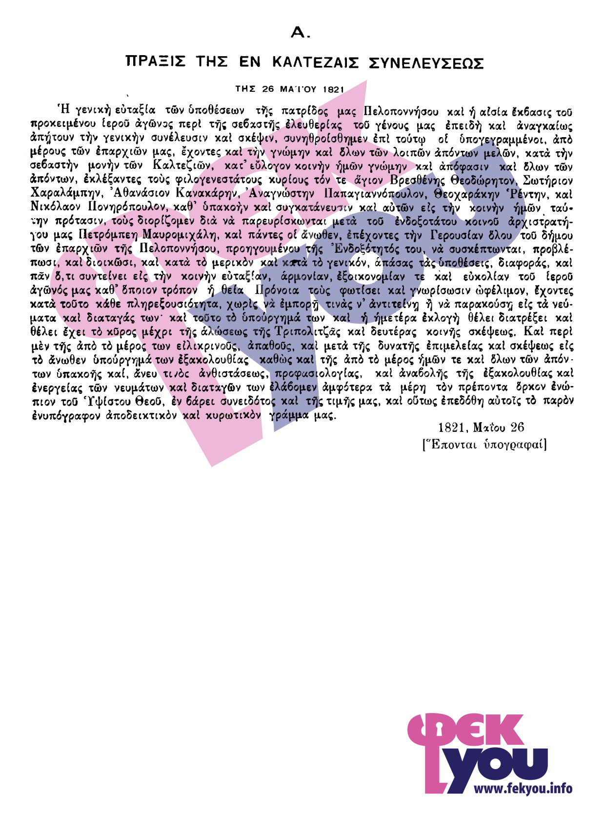 Η Συνέλευση των Καλτεζών (1821) και το Πρώτο Πολιτειακό Κείμενο της Ελλάδος